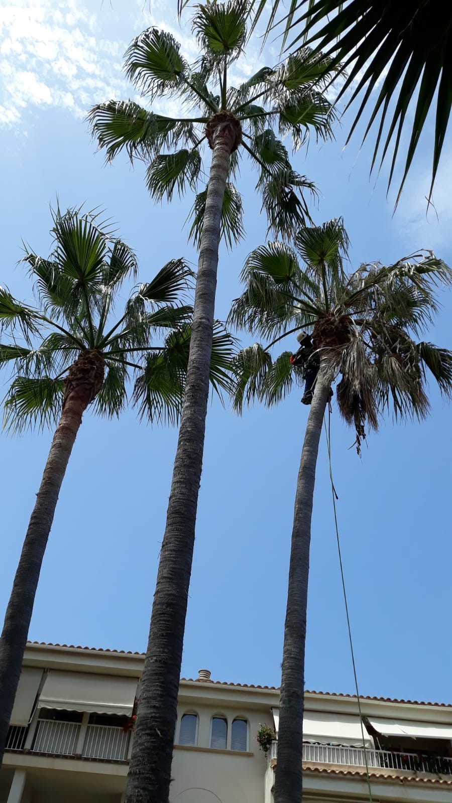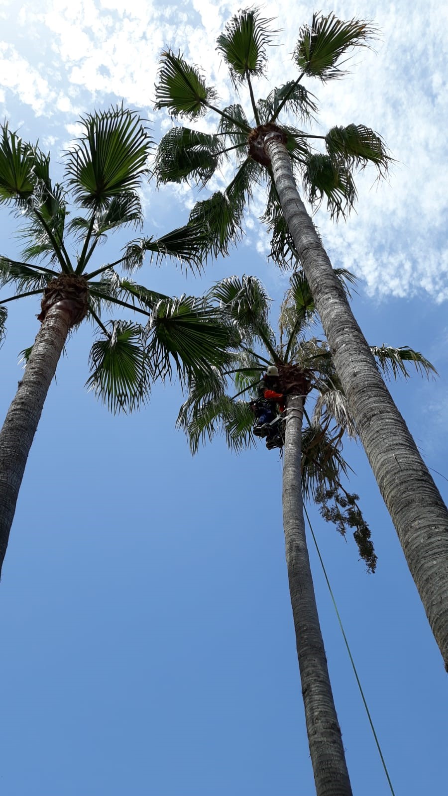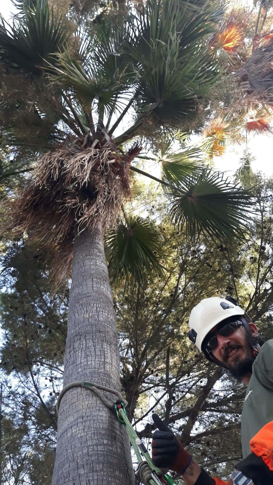 Esment Jardineria está en temporada de poda de palmeras. Además, aprovecha este trabajo para formar a un profesional en poda de altura. El trabajo de poda palmeras tiene cierta dificultad. Requiere de un gran esfuerzo físico, conocer los utensilios y la técnica de trepa de árboles. Además, hay que formarse en la fisiología de las palmeras, protocolos de poda y diagnóstico de posibles problemas.