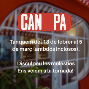 Can Pa,nuestro punto de venta situado en el barrio de Gomila, cerrará por vacaciones del 18 de febrero al 5 de marzo. Durante estos días el personal aprovechará para descansar y el servicio de mantenimiento para hacer las mejoras que encuentre necesarias.