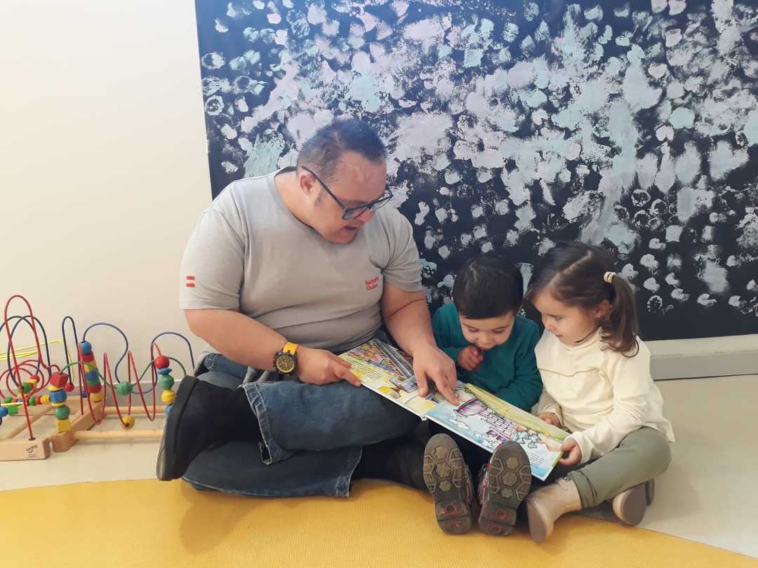 Es una de las nuevas actividades que realiza Esment Guies en Andratx. Los martes, varios guías visitan la escoleta municipal con la intención de dinamizar el tiempo que los niños están en el patio. Juntos se dedican a cantar, a jugar y, en pequeños grupos, las personas de Esment les cuentan cuentos.