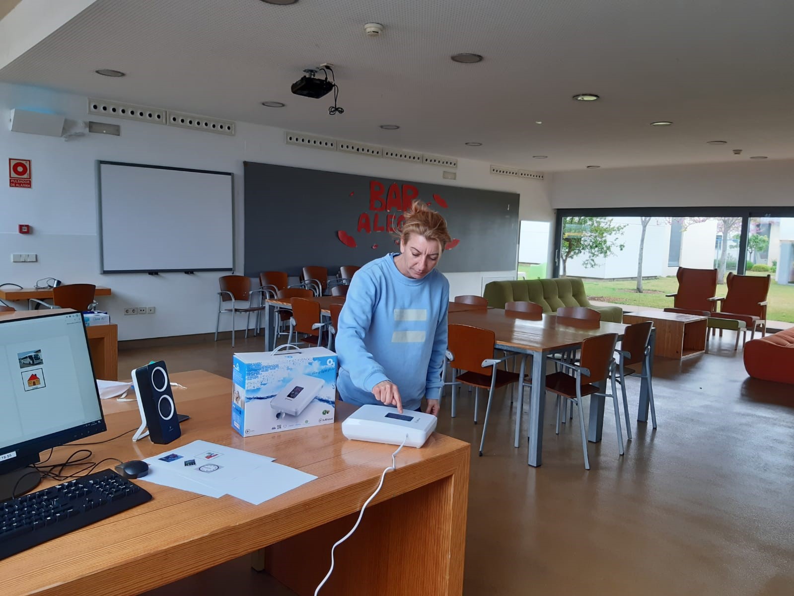 Illes Marketing nos ha donado una pequeña máquina que produce ozono. Con el ozono se eliminan bacterias y debe usarse cuando la habitación está vacía. Tras 20 minutos, hay que airear el espacio. Gracias, Illes Marketing, por vuestra colaboración.