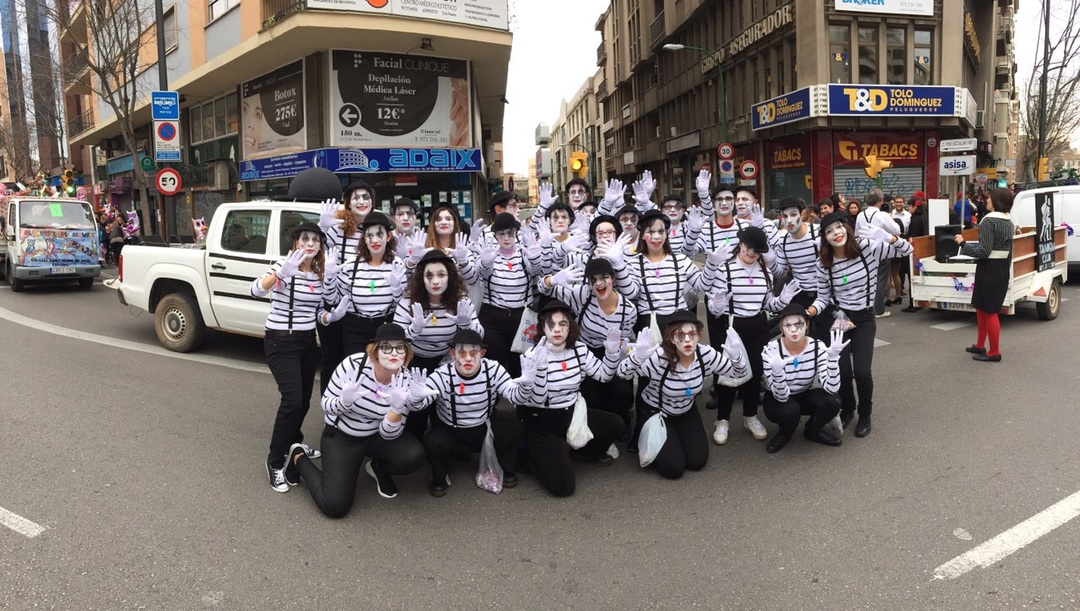 Un grupo de Ocio ha participado en la Rúa de Palma. La comparsa se llamó «Explosión» y participaron 30 personas disfrazadas de mimos.
