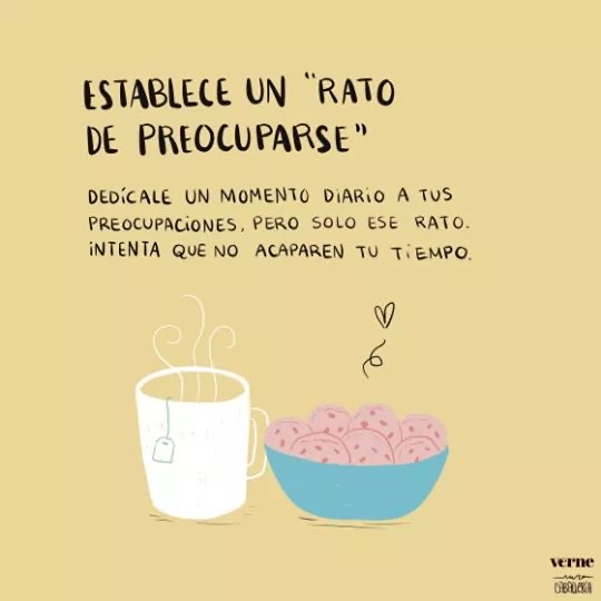 - Dedícale un ratito (corto) a tus preocupaciones. Una vez que haya pasado ese tiempo, desconecta.