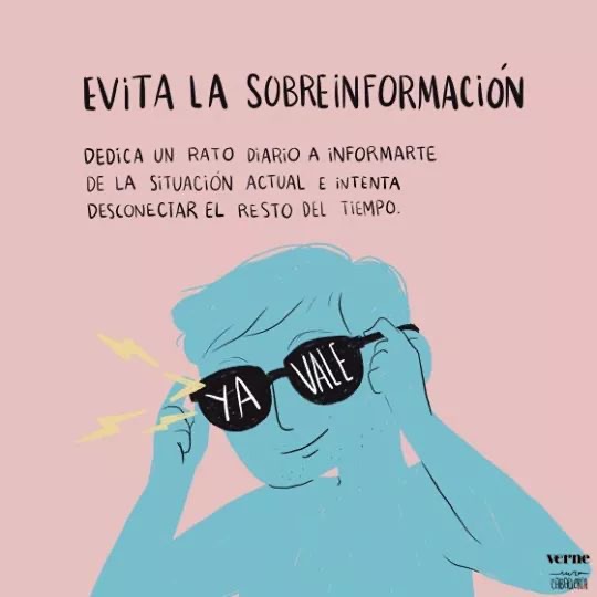 - Infórmate, pero no demasiado. Dedica un rato a informarte sobre lo que está pasando, pero no estés todo el día actualizando la información. Desconecta.
