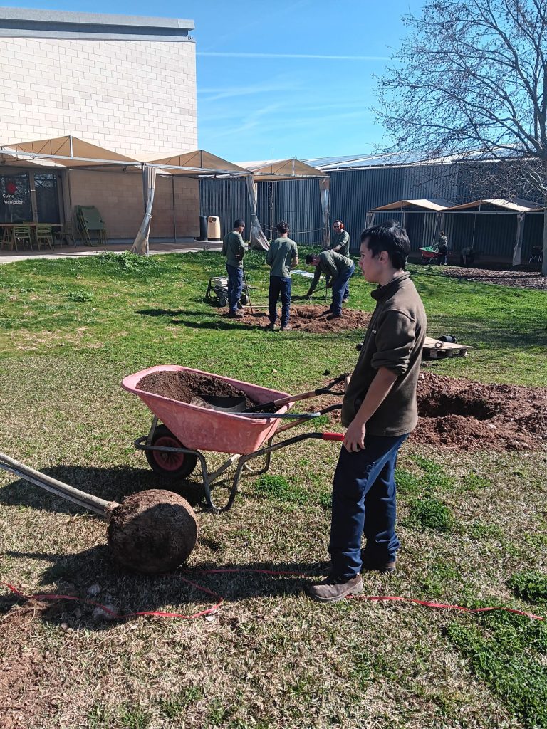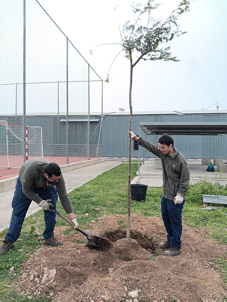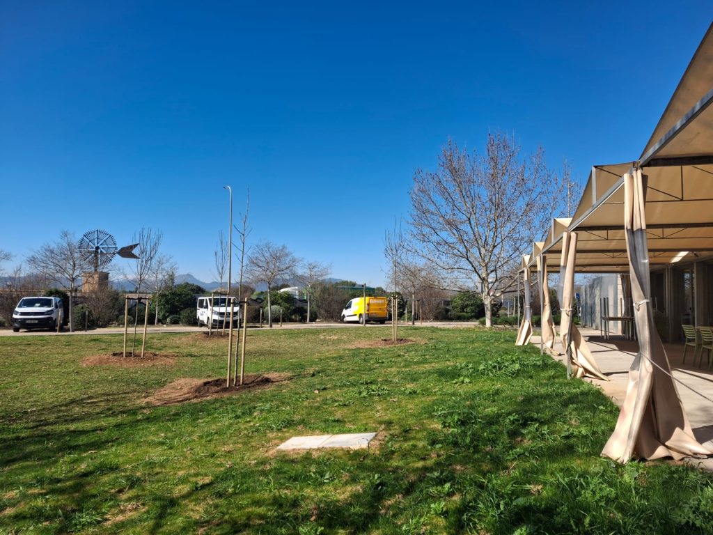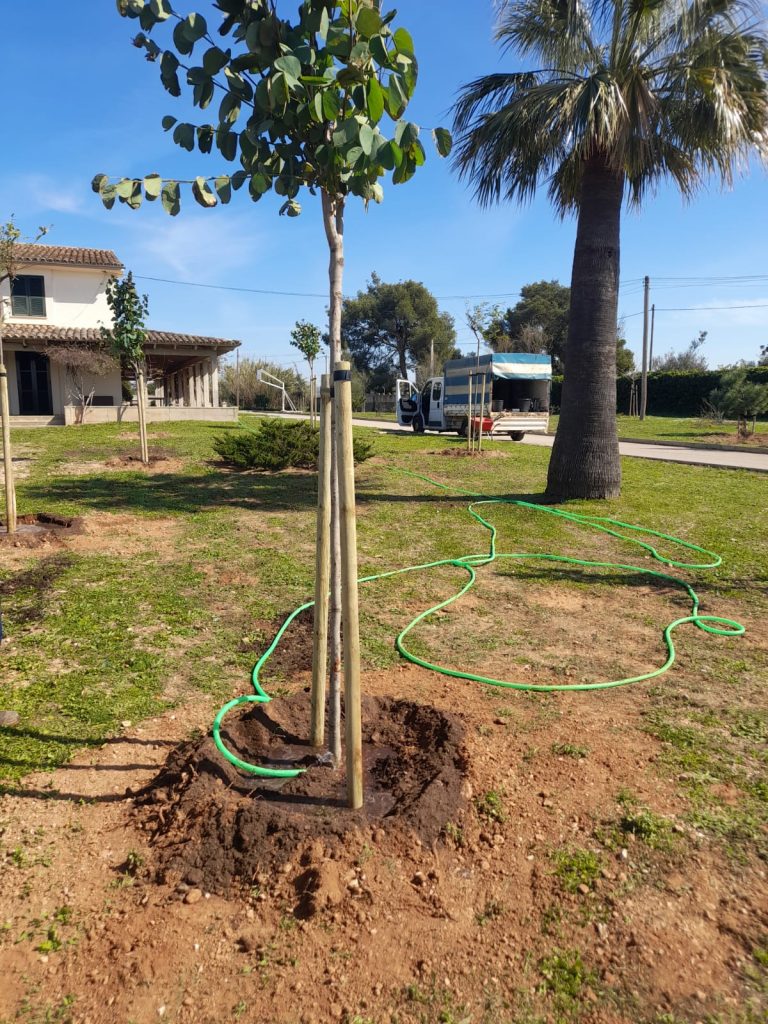 El equipo de Esment Jardinería ha realizado esta semana la plantación de nuevos árboles plataneros en la sede de Weyler, concretamente frente a Nave Social y en Casa Esment, y en Pla de na Tesa. Esta actuación constituye una parte del plan integral destinado a aumentar las zonas de sombra en todas las sedes, mejorar el confort térmico en verano y crear refugios climáticos que permitan disfrutar de espacios exteriores incluso en los meses de mayor calor. El platanero ha sido la especie elegida por su capacidad para desarrollar un porte robusto y generar una sombra muy densa, convirtiéndose en uno de los árboles más eficaces para mitigar el impacto de las altas temperaturas y mejorar la habitabilidad de los espacios abiertos.