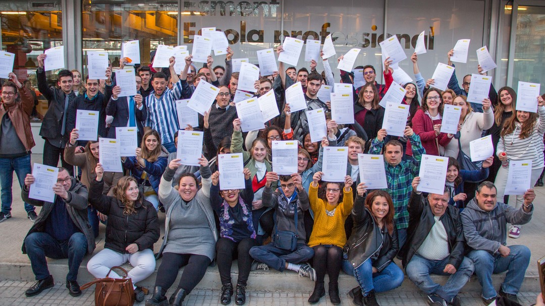 Alrededor de 90 aprendices de Formación Dual en imprenta, cocina, atención en sala, pastelería, jardinería, oficina y lavandería han recibido su certificado de profesionalidad.