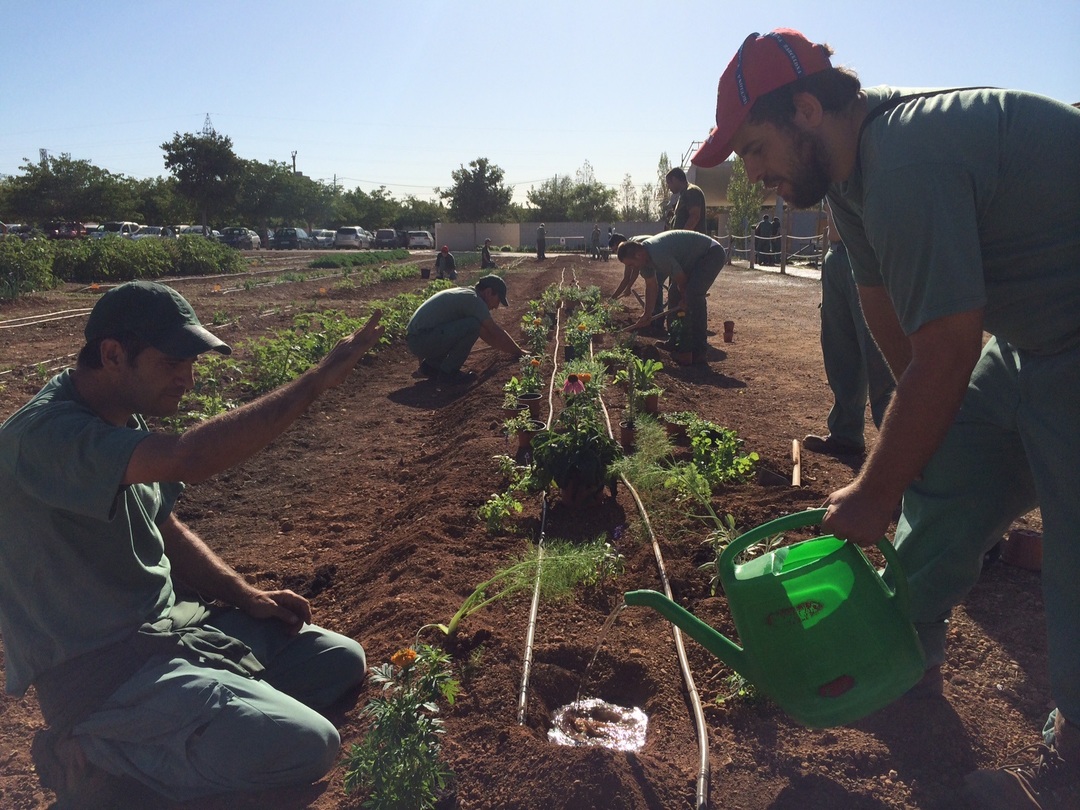 A les imatges alguns companys de l’àrea d’agricultura planten una bardissa de flors i plantes aromàtiques i medicinals. A més de donar color i bellesa a l’hort també afavoreixen la biodiversitat i creen condicions favorables pels insectes depredadors i polinitzadors. Una manera d’evitar les plagues sense utilitzar cap producte químic.