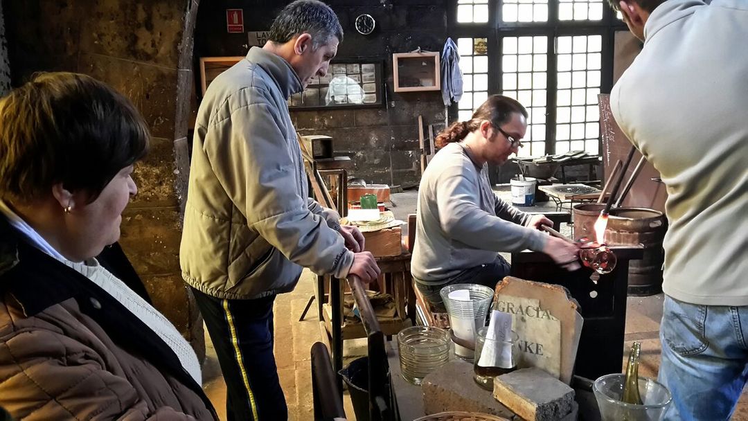 Pudimos ver cómo se fabrica todo tipo de utensilios para el hogar de forma artesanal. En esta visita aprendimos el proceso de fabricación del vidrio y cómo se hacen diferentes objetos como lámparas, vasos, figuras…